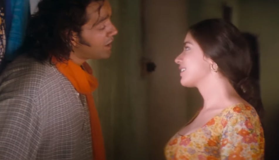 He replies with “kaha jo zor se, to chaaro oar se, hasenge hum pe sab, humare shor se” which! let me tell you about! He knows how the situation is nothing less than risible, she is chopping onions, he is jumping around declaring LOVE ME LOVE ME LOVE ME. He answers back - if I get any louder, other people will hear us and laugh at us because of this silly ruckus we (I) have created. Isn’t that just endearing?